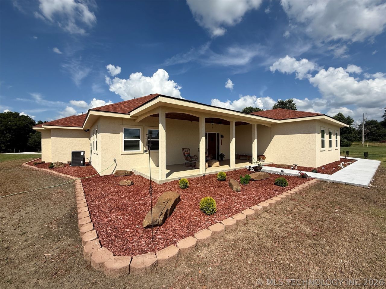 Discover this extraordinary custom-built home nestled on 2.59 m/l acres in a serene, tranquil location. This 5 bed, 2.5 bath (with an extra room that could be an office, playroom, etc.) hidden gem offers the perfect fusion of exquisite luxury and comfortable everyday living. From arched doorways to steam showers, travertine and slate flooring to a double filtration/purification water purifier, custom fixtures, and blackout custom blinds, this magnificent home boasts high-end, custom features. This home is truly a work of art. The architecture is simply stunning, with meticulous attention to detail. The impressive kitchen is a chef's dream come true! It features custom cabinets with drawer pull-outs and soft-close doors/drawers, a spacious pantry, and an oversized kitchen island that serves as a stunning centerpiece for gatherings. Thoughtfully designed, the house is zoned for two hot water heaters, two HVAC systems, and a robust laundry room/mud room which includes new washer and dryer that remain with the property and has ample space for all your needs. With a true spa-like retreat, the master suite offers a double sink vanity, a walk-in shower, a separate jacuzzi tub, and a walk-in closet that you'll love. Escape to the wonderful front porch, where you can enjoy a peaceful and serene get away. This move-in-ready home is brimming with extra touches that make it truly unique. Come and see this gorgeous property for yourself and make it yours today!