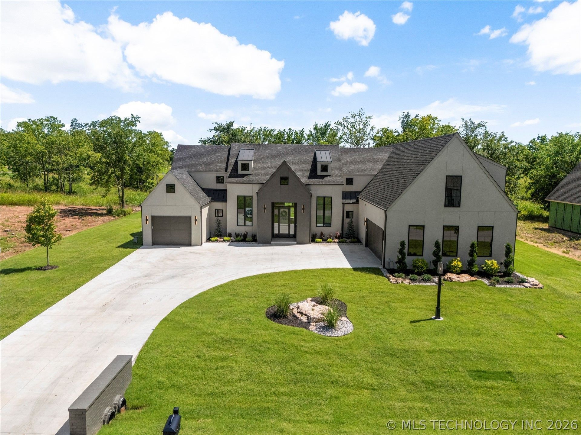 Back on the market through no fault of seller. Welcome to your dream home in the new gated Coves community! This exquisite two-story residence boasts a modern elevation. Located on a spacious .62 acre lot, this property offers a peaceful retreat with a enormous back patio! 4 Bedrooms with En-suite Baths + a half bath. A small Office off the kitchen is ideal for remote work or study. Large game room with drybar. Enjoy white oak cabinetry accents, sleek quartz countertops, and a commercial fridge for culinary enthusiasts. Expansive master bathroom features a roll-in shower and upgraded fixtures. Upgraded Trim and Lighting with warm gold tones add elegance throughout the home. Lots of mature trees and room for a future pool. Built by Cozort Custom Homes, a 3rd generation builder operating for 70 years in Tulsa. Don't miss the opportunity in the Coves, one of Stone Canyons newest and popular neighborhoods with lake and walking trails near Patriot golf course. Agent related to seller.