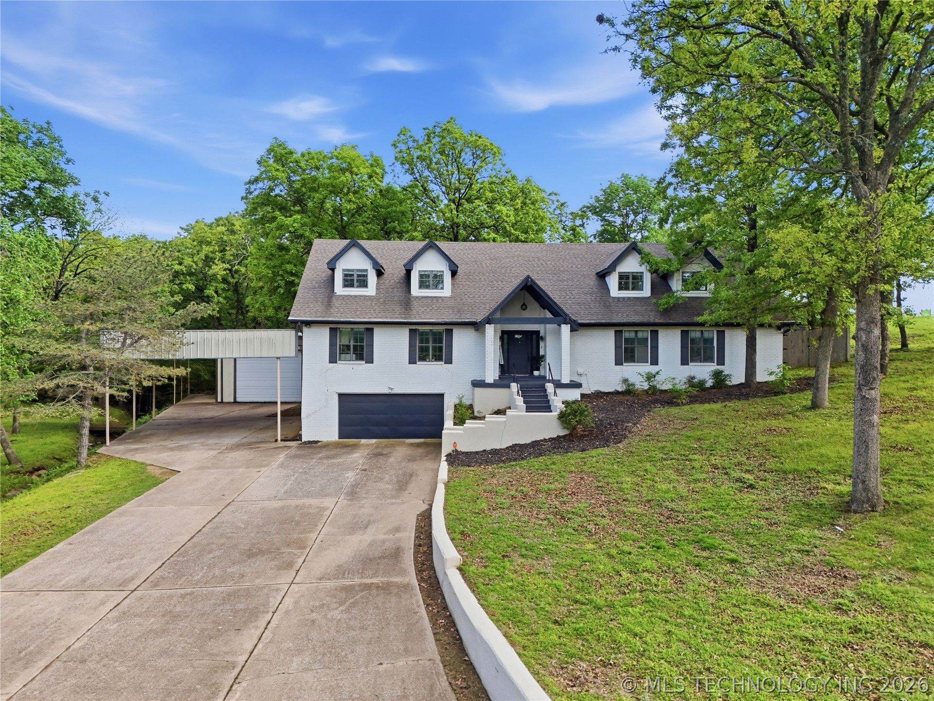 Welcome to this absolutely gorgeous 5-bed, 4-bath modern farmhouse designed with both everyday living and entertaining in mind. Featuring a thoughtfully designed split floor plan, this home offers exceptional space, comfort, and flexibility for any lifestyle. The heart of the home is the show-stopping kitchen, complete with a massive island perfect for gathering, entertaining, and making memories. The open-concept layout flows seamlessly into the main living areas, creating a warm and inviting atmosphere filled with natural light. Upstairs, you'll find a huge game room ideal for a media space, playroom, or additional living area. Bedrooms are generously sized, with most offering private en-suite bathrooms, providing comfort and convenience for family and guests alike. Step outside to your own private retreat an expansive back deck built for entertaining, featuring built-in heaters and a newer hot tub. Whether hosting or unwinding, this outdoor space is truly a standout. Situated on just over an acre, the property also includes a large shop/storage building and an oversized covered carport with dedicated space for your boat or additional vehicles perfect for those needing extra storage or workspace. Conveniently located just minutes from Tulsa Hills and downtown Tulsa with quick highway access, this property combines peaceful living with city convenience. Structural work has been completed, offering peace of mind, while minor cosmetic cracking remains. Home is being sold As-Is.